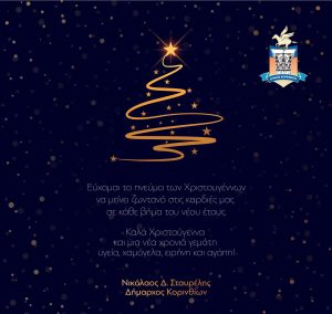 Εύχομαι σε κάθε Κορίνθια και κάθε Κορίνθιο, η νέα χρονιά να φέρει υγεία, τύχη, χαρές, χαμόγελα, ταξίδια, γαλήνη και να εκπληρώσει κάθε σας όνειρο.