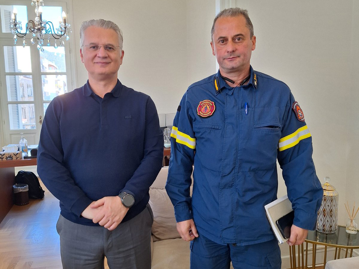 Εθιμοτυπική συνάντηση με τον νέο Περιφερειακό Διοικητή Πελοποννήσου του Πυροσβεστικού Σώματος, Πύραρχο Ανδρέα Καπουράλο, είχε ο Περιφερειάρχης Πελοποννήσου, Δημήτρης Πτωχός, την Τετάρτη 29 Ιανουαρίου, στο γραφείο του στην Τρίπολη.