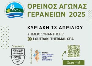 Την Κυριακή 13 Απριλίου, σας περιμένουμε όλες και όλους στη φιλόξενη πόλη μας για να ζήσουμε όλοι μαζί τη μοναδική εμπειρία που μας προφέρει ο «Ορεινός Αγώνας Γερανείων».