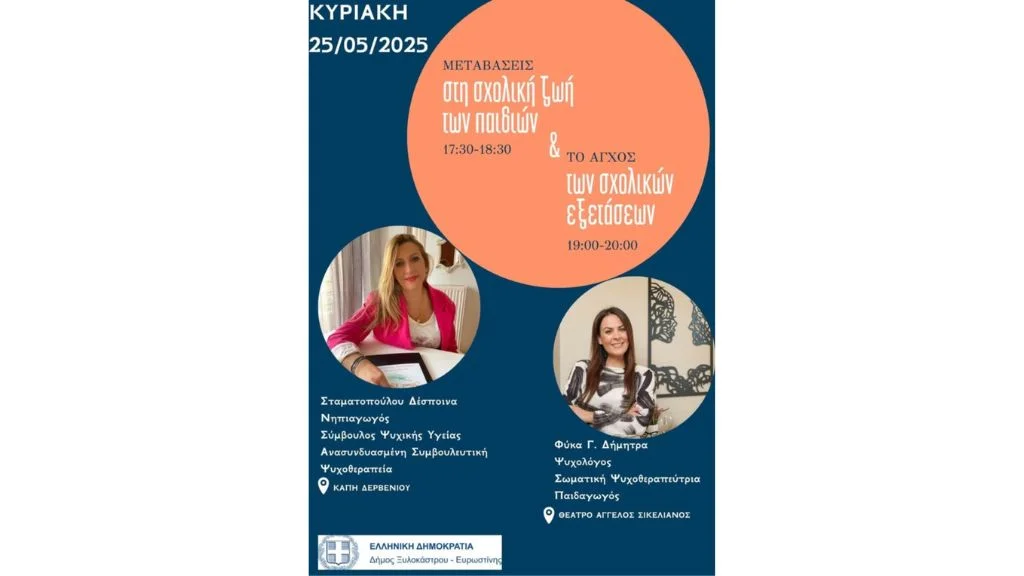 Δήμος Ξυλοκάστρου-Ευρωστίνης: 6η Σχολή Γονέων με τίτλο «Μεταβάσεις στη Σχολική Ζωή των Παιδιών» & «Το άγχος των σχολικών εξετάσεων».