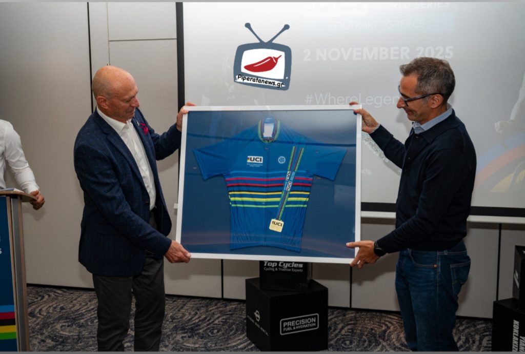 Η συνέντευξη τύπου ολοκληρώθηκε με την παρουσίαση της φανέλας και του μεταλλίου του UCI Gran Fondo Loutraki 2025, που συμβολίζουν την ταυτότητα και την αξία αυτής της μεγάλης ποδηλατικής γιορτής. Οι Δήμαρχοι Λουτρακίου-Περαχώρας-Αγίων Θεοδώρων και Μεγαρέων, τιμήθηκαν με την επίσημη φανέλα της UCI και το μετάλλιο του νικητή για την συνεισφορά τους στη διοργάνωση.