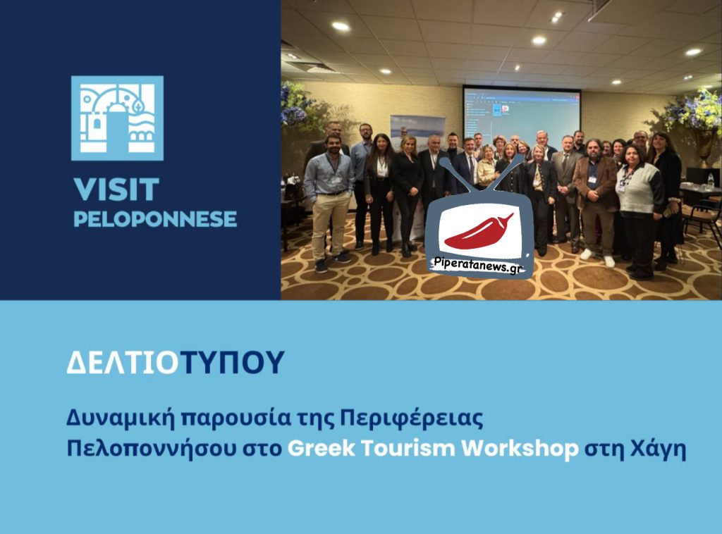 Με ιδιαίτερη επιτυχία ολοκληρώθηκε η συμμετοχή της Περιφέρειας Πελοποννήσου στο Greek TourismWorkshop, που πραγματοποιήθηκε στη Χάγη στις 30 Οκτωβρίου 2025, συγκεντρώνοντας το ενδιαφέρον δεκάδων επαγγελματιών του τουρισμού από την Ολλανδία και τη Βόρεια Ευρώπη.
