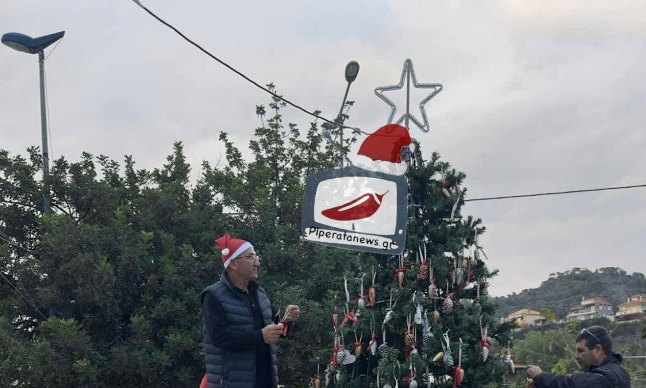 Ο Σχοίνος φόρεσε τα γιορτινά του με Χριστουγεννιάτικο δέντρο και βάρκα