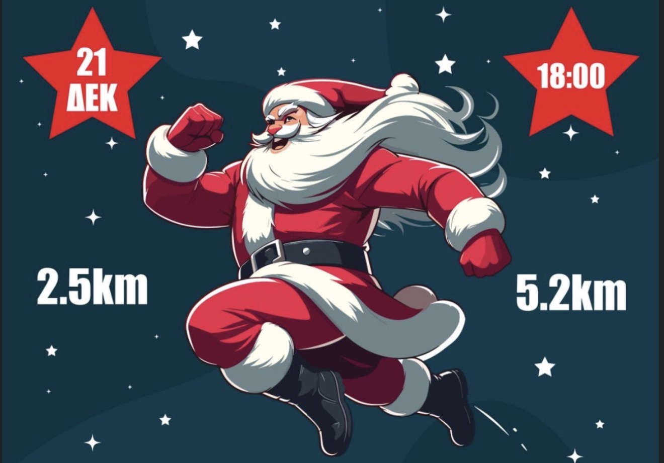 Σας προσκαλούμε να λάβετε μέρος στη μεγάλη χριστουγεννιάτικη νυχτερινή δρομική γιορτή της Κορίνθου, που θα πραγματοποιηθεί την Κυριακή 21 Δεκεμβρίου 2025, στις 18:00, με δύο διαδρομές: 2.5 km και 5.2 km.