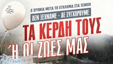 Τρία χρόνια μετά το έγκλημα στα Τέμπη, τίποτα δεν έχει κλείσει. Γιατί δεν ήταν «τραγωδία», ούτε «ανθρώπινο λάθος». Ήταν κρατικό και πολιτικό έγκλημα, με ονοματεπώνυμο: ιδιωτικοποιήσεις, διάλυση δημόσιων υποδομών, υποστελέχωση, εργολαβίες, «κόφτες» στην ασφάλεια στο όνομα της ανταγωνιστικότητας και των κερδών.