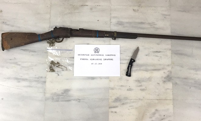 ενώ κατασχέθηκαν μικροποσότητα κάνναβης, μαχαίρι και πολεμικό τυφέκιο.