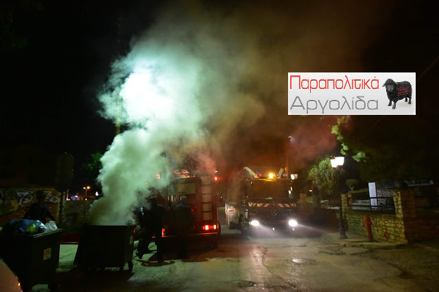 Η φωτιά που εκδηλώθηκε απειλούσε σταθμευμένα αυτοκίνητα που βρίσκονταν πλησίον του κάδου αλλά η άμεση επέμβαση της Πυροσβεστικής απέτρεψε τα χειρότερα.