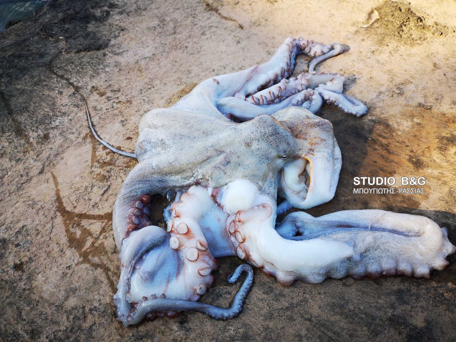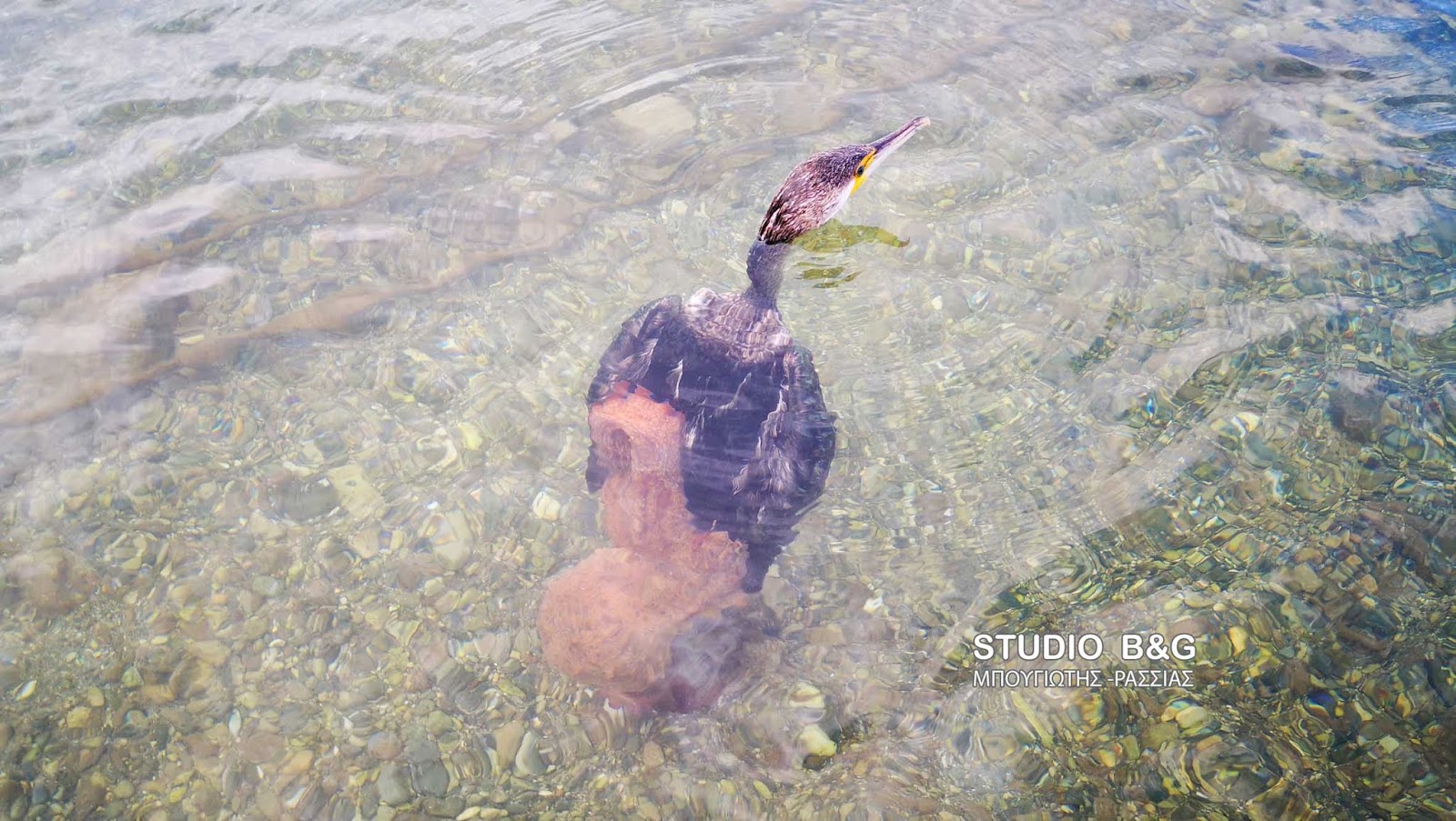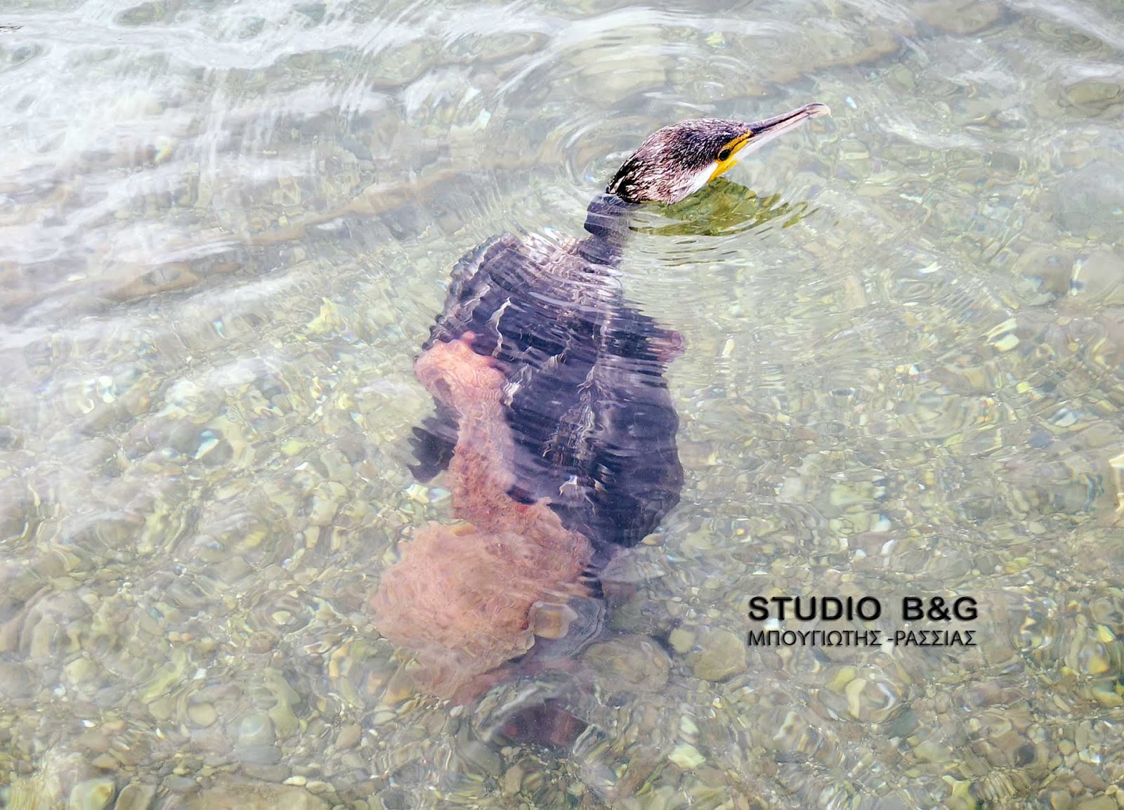Ένας κορμοράνος που φημίζεται για το ψάρεμα του, στην προσπάθεια του να πιάσει κάποιο ψάρι στην παραλία Καραθώνας στο Ναύπλιο εντοπίστηκε από ένα μεγάλο χταπόδι που δεν δίστασε να τον πιάσει στα πλοκάμια του.