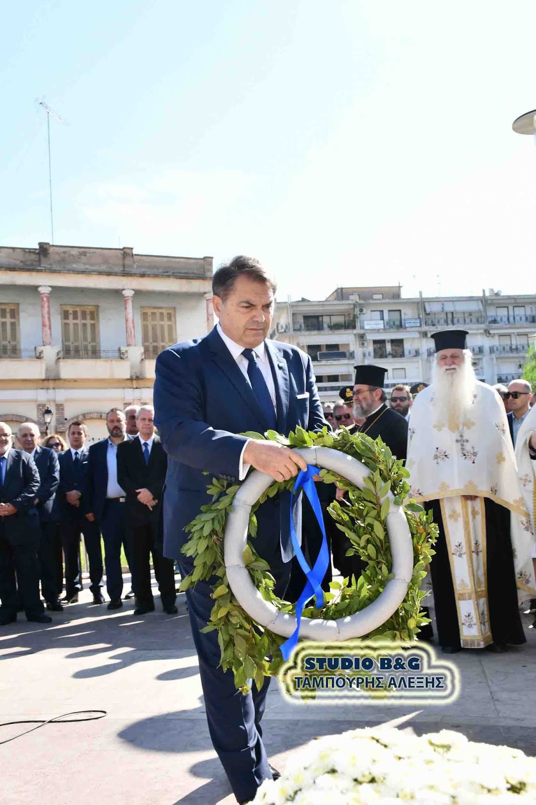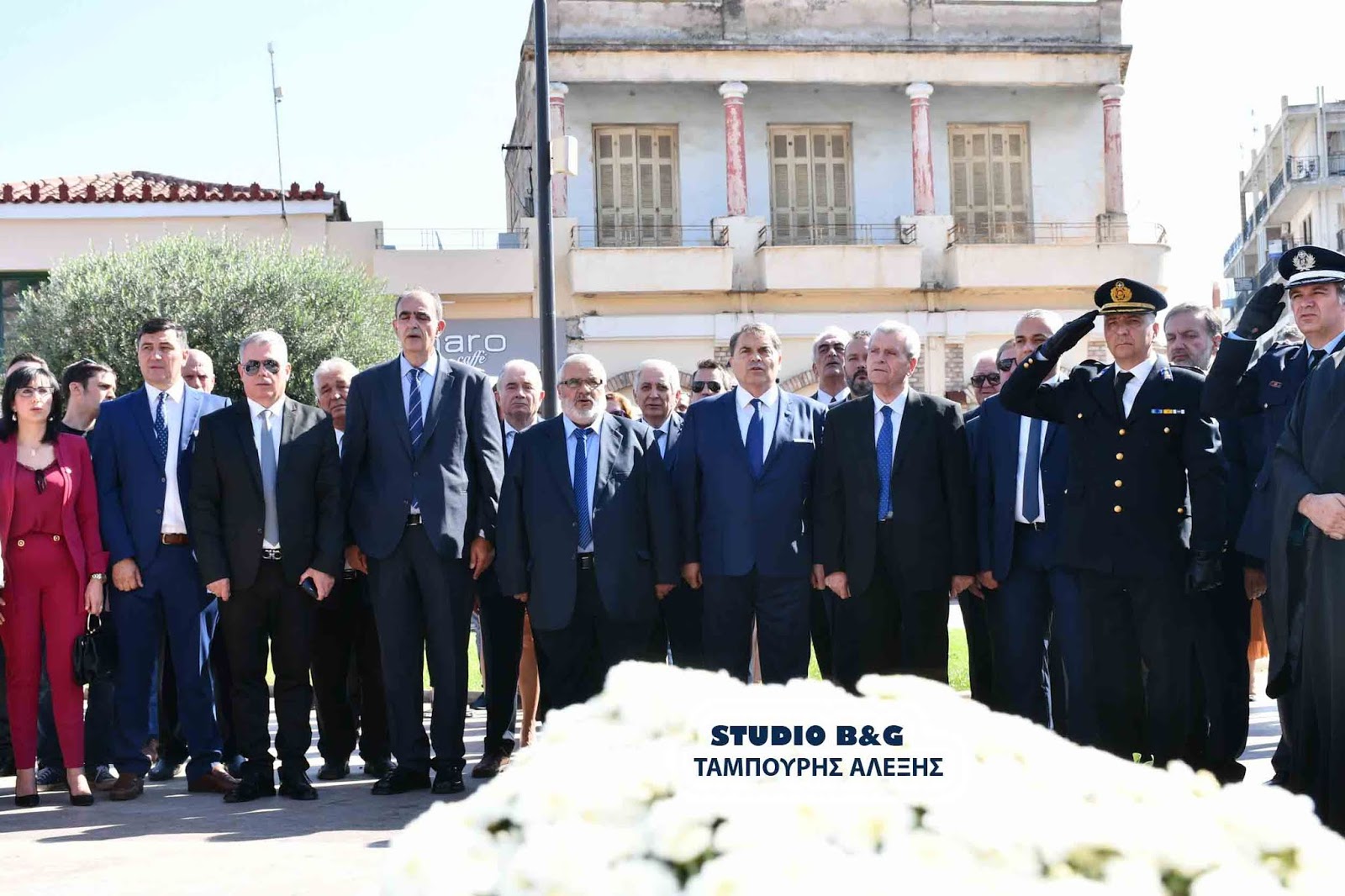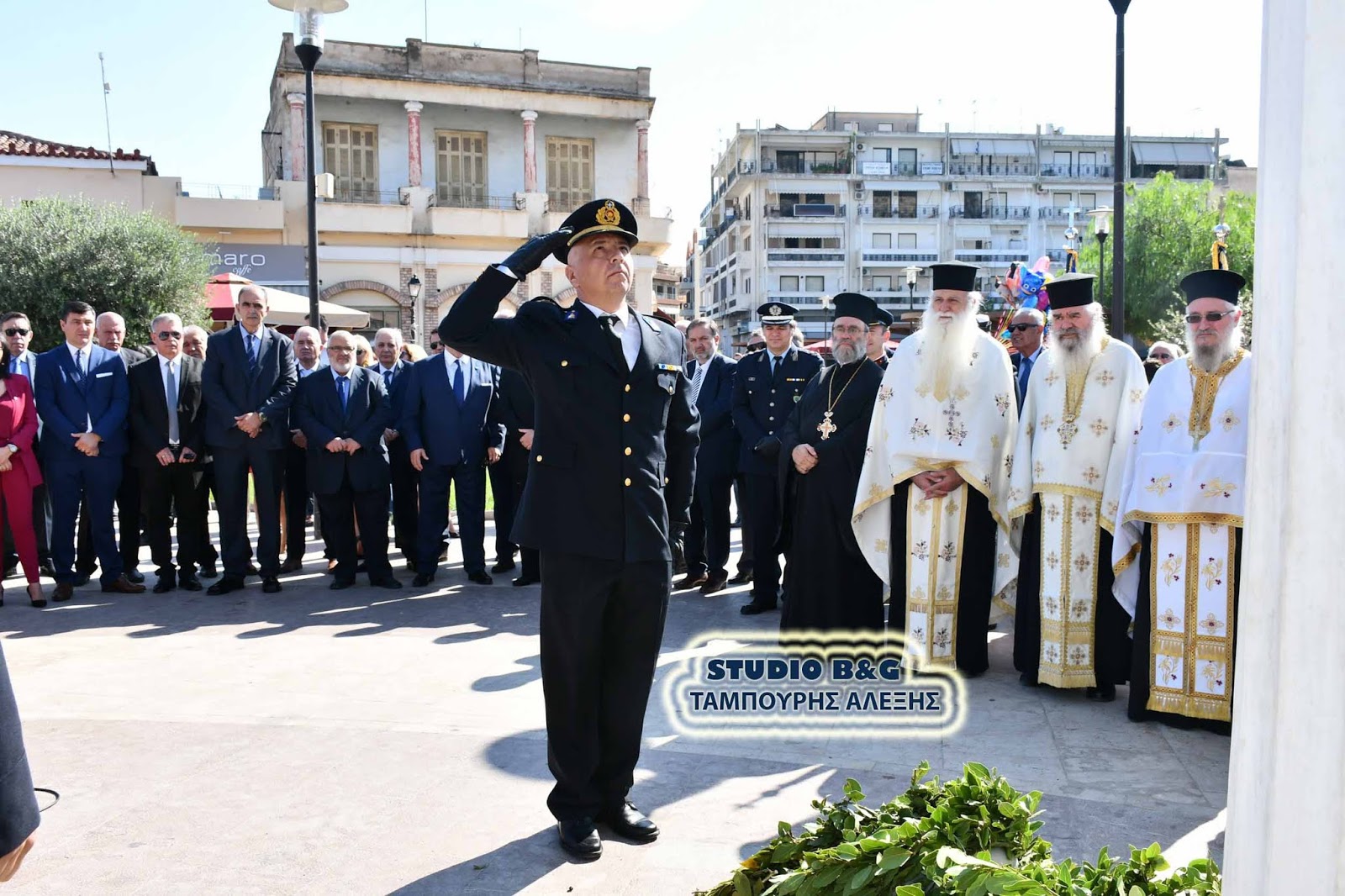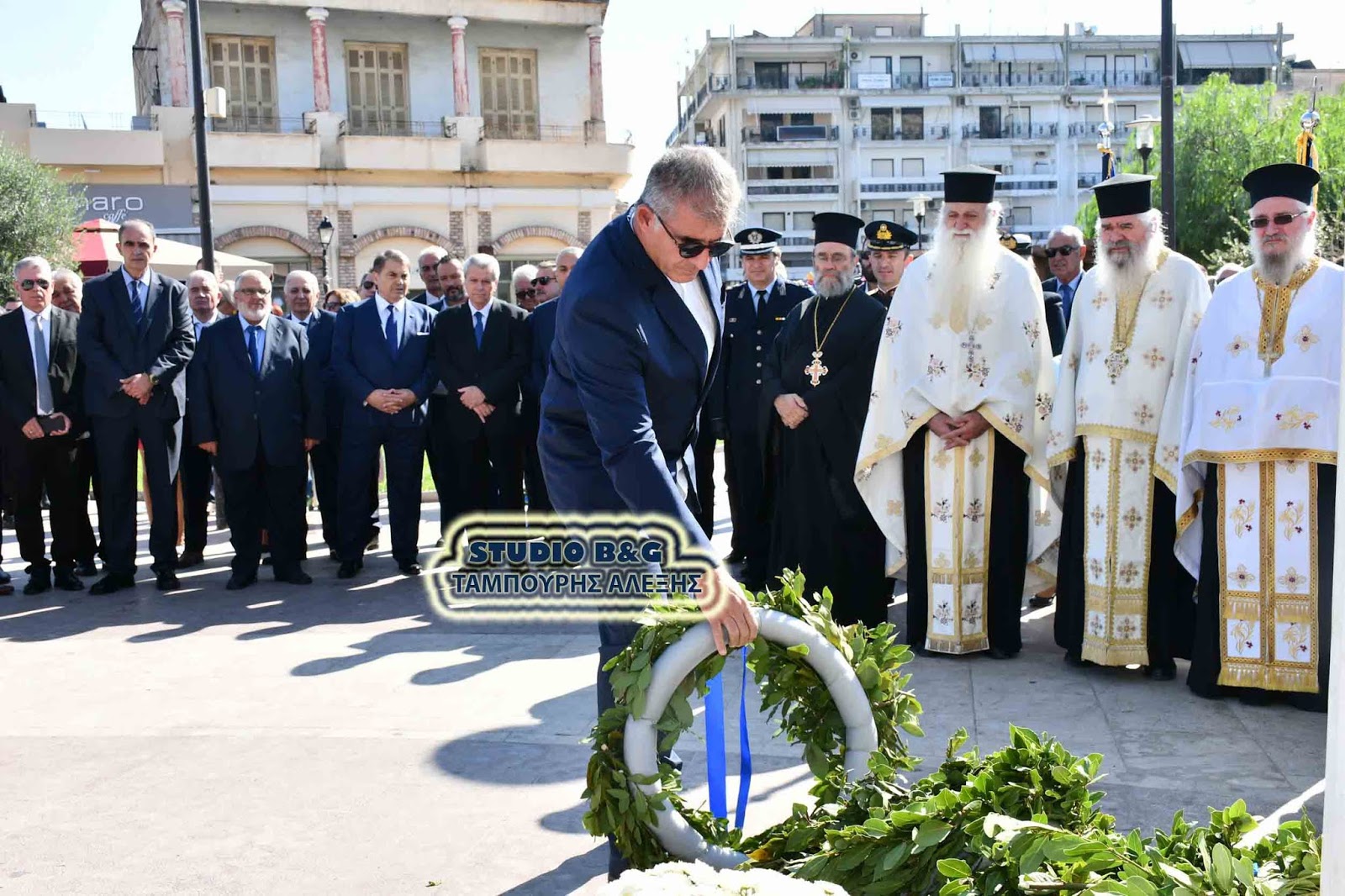 Παρουσία των βουλευτών Αργολίδας Γ.Ανδριανού, Γ. Γκιόλα και Ανδρεα Πουλά, του Δημάρχου Άργους Μυκηνών Δ. Καμπόσου, του Πρόεδρου του Δημοτικού Συμβουλίου Κ. Μπέγγου, του Πρόεδρου της Τοπικής Κοινότητας Άργους Δ. Καρυάμη, των αντιδημάρχων και δημοτικών συμβούλων και μελών συλλόγων αποστράτων, των μαθητικών τμημάτων και των πολιτιστικών συλλόγων, τίμησαν την εθνική επέτειο.