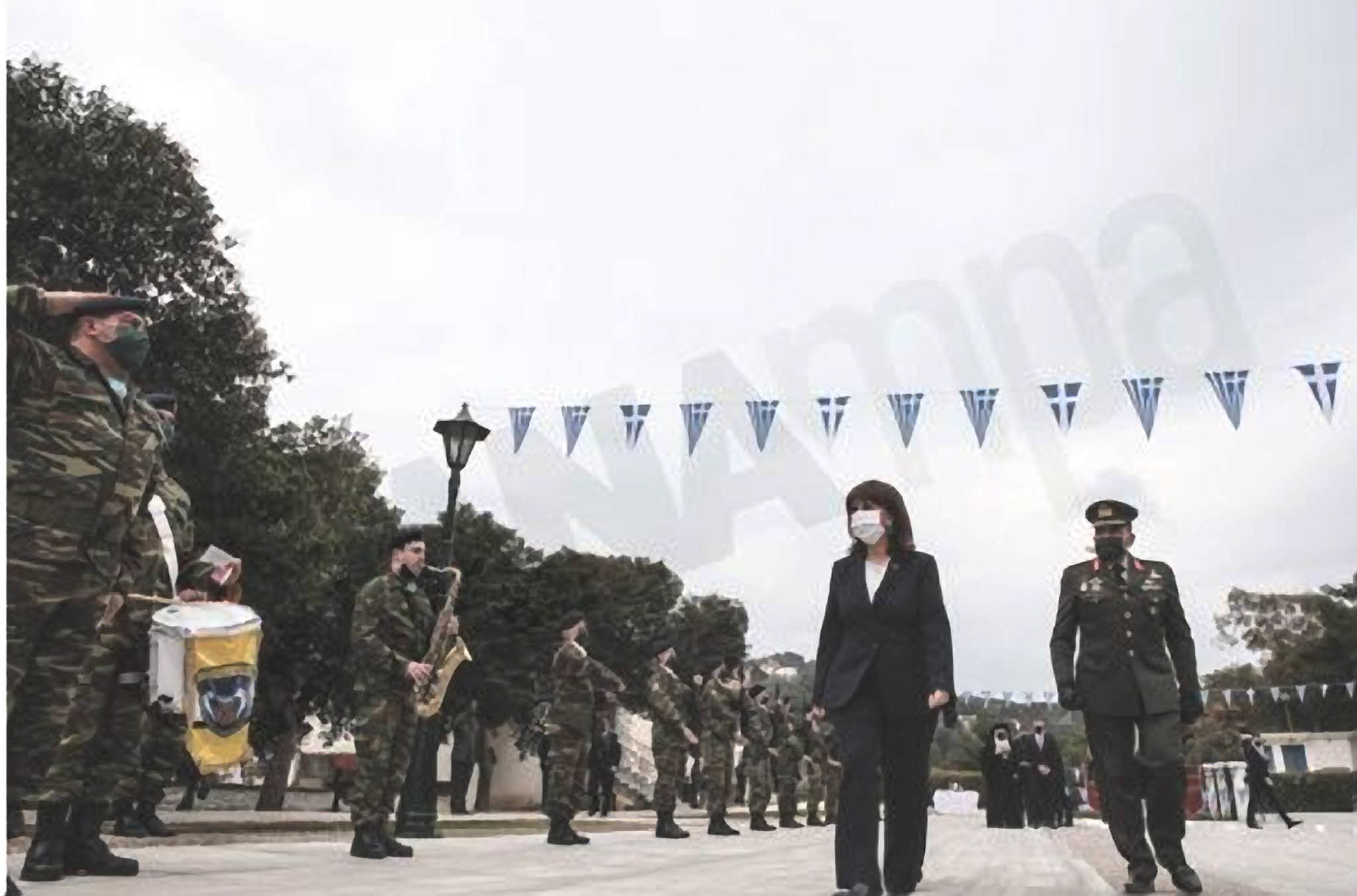 Η κυρία Σακελλαροπούλου παρακολούθησε την επίσημη δοξολογία στον Ιερό Ναό της Ευαγγελιστρίας που τελεσε ο Μητροπολίτης Αργολίδας Νεκτάριος και στη συνέχεια κατέθεσε στεφάνι στην Αναθηματική στήλη στην πλατεία της Α’ Εθνοσυνέλευσης, όπου έκανε την παρακάτω δήλωση: