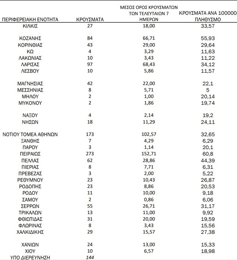 Δείτε την κατανομή των κρουσμάτων σύμφωνα με τα στοιχεία του ΕΟΔΥ: