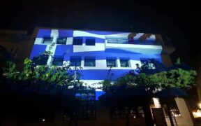 Εντυπωσιακό το θέαμα στο δημαρχείο της Κορίνθου. Στα πλαίσια του εορτασμού της 28ης Οκτωβρίου μια τεράστια ελληνική σημαία έδωσε χρώμα στο κέντρο της πόλης.