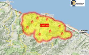 ❗Σύμφωνα με υπολογισμούς περίπου 146 τετραγωνικά χιλιόμετρα γης έχουν παραδοθεί στην μανία του πύρινου εφιάλτη με τα νεώτερα απο το μέτωπο να μην είναι ευχάριστα . –meteo24news.gr