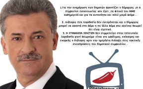 1. Για την ενημέρωση των δημοτών φροντίζει ο δήμαρχος ,οι 6 σύμβουλοι επικοινωνίας που έχει ,τα φιλικά του ΜΜΕ καθημερινά και για τα αυτονόητα και πολύ μικρά ακόμα . 2. Διάλογος στη λογοδοσία δεν επιτρέπεται και ο δήμαρχος μπορεί να απαντά στο θέμα η σε άλλο θέμα που εκείνος θεωρεί ότι είναι σχετικό. 3. Η […]
