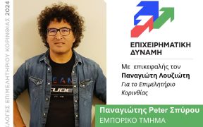 Ο Παναγιώτης (Peter) Σπύρου γεννήθηκε στο Μόντρεαλ του Καναδά από γονείς Έλληνες, οικονομικούς μετανάστες και κατοικεί στην Κόρινθο. Είναι παντρεμένος και πατέρας τριών παιδιών. Δραστηριοποιείται επαγγελματικά στον χώρο του ποδηλάτου, είναι ιδιοκτήτης του καταστήματος “Free Ride” και έχει εμπειρία στον χώρο του εμπορίου καθώς ήταν για πολλά χρόνια στο πλευρό του πατέρα του στον χώρο […]