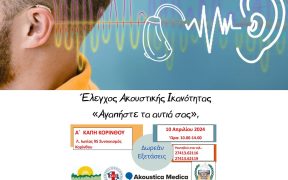 Το ΚΕΠ Υγείας του Δήμου Κορινθίων, σε συνεργασία με το Ελληνικό Διαδημοτικό Δίκτυο Υγιών Πόλεων, συνδιοργανώνουν δράση «Ελέγχου Ακουστικής Ικανότητας» την Τετάρτη 10-4-2024 σε συνεργασία με εξειδικευμένους ιατρούς ειδικότητας Ωτορινολαρυγγολογίας (ΩΡΛ) στο Α΄ ΚΑΠΗ Κορίνθου, Λ. Ιωνίας 95, Συνοικισμός Κορίνθου & ώρα 10.00 έως 14.00 Για ραντεβού μπορείτε να απευθύνεστε στα τηλέφωνα: 27413.62116, 27413.62119 Επισημαίνεται […]