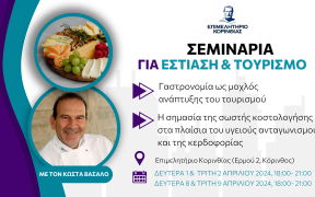 Σεμινάριο για τους επαγγελματίες του χώρου της εστίασης και του τουρισμού οργανώνει το Επιμελητήριο της Κορινθίας. Το πρόγραμμα είναι βιωματικό και διαδραστικό. Συνδυάζει τη θεωρητική με την πρακτική εκπαίδευση. Κρατά 6 ώρες, σε 2 συναντήσεις των 3 ωρών. Θα λάβει χώρα στον 2ο όροφο του Επιμελητηρίου Κορινθίας, στην Κόρινθο. Η συμμετοχή για τα μέλη του Επιμελητηρίου Κορινθίας είναι δωρεάν.Το σεμινάριο […]
