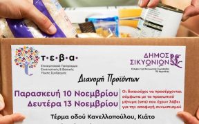 Ο Δήμος Σικυωνίων, στο πλαίσιο του προγράμματος «Επισιτιστικής και Βασικής Υλικής Συνδρομής του Ταμείου Ευρωπαϊκής Βοήθειας για τους Απόρους (ΤΕΒΑ/FEAD)», ενημερώνει ότι την Παρασκευή 10 και τη Δευτέρα 13 Νοεμβρίου 2023 θα πραγματοποιηθεί διανομή βασικών προϊόντων ΤΕΒΑ, που αφορά στην ενίσχυση 524 νοικοκυριών. Η διανομή θα λάβει χώρα στο Κιάτο, στο τέρμα της οδού Κανελλοπούλου, και […]