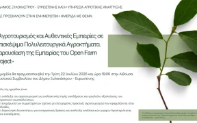 Ο ΔΗΜΟΣ ΞΥΛΟΚΑΣΤΡΟΥ – ΕΥΡΩΣΤΙΝΗΣ ΚΑΙ Η ΥΠΗΡΕΣΙΑ ΑΓΡΟΤΙΚΗΣ ΑΝΑΠΤΥΞΗΣ ΣΑΣ ΠΡΟΣΚΑΛΟΥΝ ΣΤΗΝ ΕΝΗΜΕΡΩΤΙΚΗ ΗΜΕΡΙΔΑ ΜΕ ΘΕΜΑ: «Αγροτουρισμός και Αυθεντικές Εμπειρίες σε Επισκέψιμα Πολυλειτουργικά Αγροκτήματα. Παρουσίαση της Εμπειρίας του Open Farm Project» Η ημερίδα θα πραγματοποιηθεί την Τρίτη 22 Ιουλίου 2025 και ώρα 19:00 στην Αίθουσα Δημοτικού Συμβουλίου του Δήμου Ξυλοκάστρου – Ευρωστίνης. Σκοπός της […]