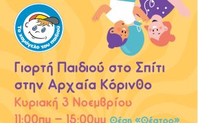 Γιορτή για τα Παιδιά στο Σπίτι του Οργανισμού «Το Χαμόγελο του Παιδιού»στην Αρχαία Κόρινθο 3 Νοεμβρίου 2024 | 11:00 – 15:00 «Το Χαμόγελο του Παιδιού» με χαρά σας προσκαλεί στη Γιορτή για τα Παιδιά που διοργανώνει στο Σπίτι στην Αρχαία Κόρινθο, Θέση «Θέατρο», τηΚυριακή 3 Νοεμβρίου από τις 11:00 έως τις 15:00 για να διασκεδάσουμε […]