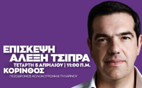 Ο Πρόεδρος του ΣΥΡΙΖΑ- Προοδευτική Συμμαχία Αλέξης Τσίπρας, αύριο Τετάρτη 5 Απριλίου στις 11:00, θα βρίσκεται στην Κόρινθο (εκκίνηση από πεζόδρομο Κολοκοτρώνη και Πυλαρινού).