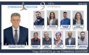 9 ακόμα ονόματα ανακοινώνει σήμερα η «ΣΥΜΜΑΧΙΑ ΠΟΛΙΤΩΝ» και ο Δήμαρχος Κορινθίων Βασίλης Νανόπουλος. Κορίνθιοι που, αντιλαμβανόμενοι το ισχυρό ρεύμα» της παράταξης του δημάρχου, την έντιμη στάση και βεβαίως το απτό αποτέλεσμα στην διοίκηση του δήμου Κορινθίων τα 3,5 τελευταία χρόνια , εμπιστεύονται την ΣΥΜΜΑΧΙΑ ΠΟΛΙΤΩΝ, συστρατεύονται και ο καθένας ξεχωριστά, με την δική του […]