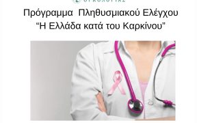 Στο πλαίσιο του προγράμματος πληθυσμιακού ελέγχου «Η ΕΛΛΑΔΑ ΚΑΤΑ ΤΟΥ ΚΑΡΚΙΝΟΥ», που πραγματοποιεί το Ελληνικό Ίδρυμα Ογκολογίας σε συνεργασία με την Περιφέρεια Πελοποννήσου για την πρόληψη και την έγκαιρη διάγνωση του καρκίνου του μαστού και του τραχήλου της μήτρας, ξεκινά πρόγραμμα πληθυσμιακού ελέγχου για τις γυναίκες που κατοικούν μόνιμα στον Δήμο Κορινθίων με εξέταση Μαστογραφίας […]