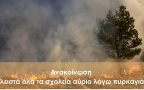 Ο Δήμος Ξυλοκάστρου – Ευρωστίνης ενημερώνει τους πολίτες του ότι, λόγω των έκτακτων συνθηκών που έχουν προκύψει από την πυρκαγιά, όλα τα σχολεία θα παραμείνουν κλειστά αύριο 1/10. Η ασφάλεια των μαθητών και των κατοίκων είναι απόλυτη προτεραιότητά μας, και παρακαλούμε όλους τους γονείς και τους κηδεμόνες να ενημερώνονται τακτικά από τα επίσημα κανάλια επικοινωνίας […]